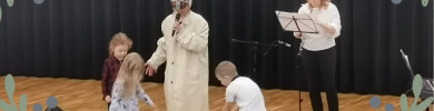 Podczas koncertu poznaliśmy wiosenne piosenki, których bohaterami były zwierzęta i owady mieszkające na wiosennej łące. Podczas koncertu dzieci poznały drewniany instrument dęty - obój.